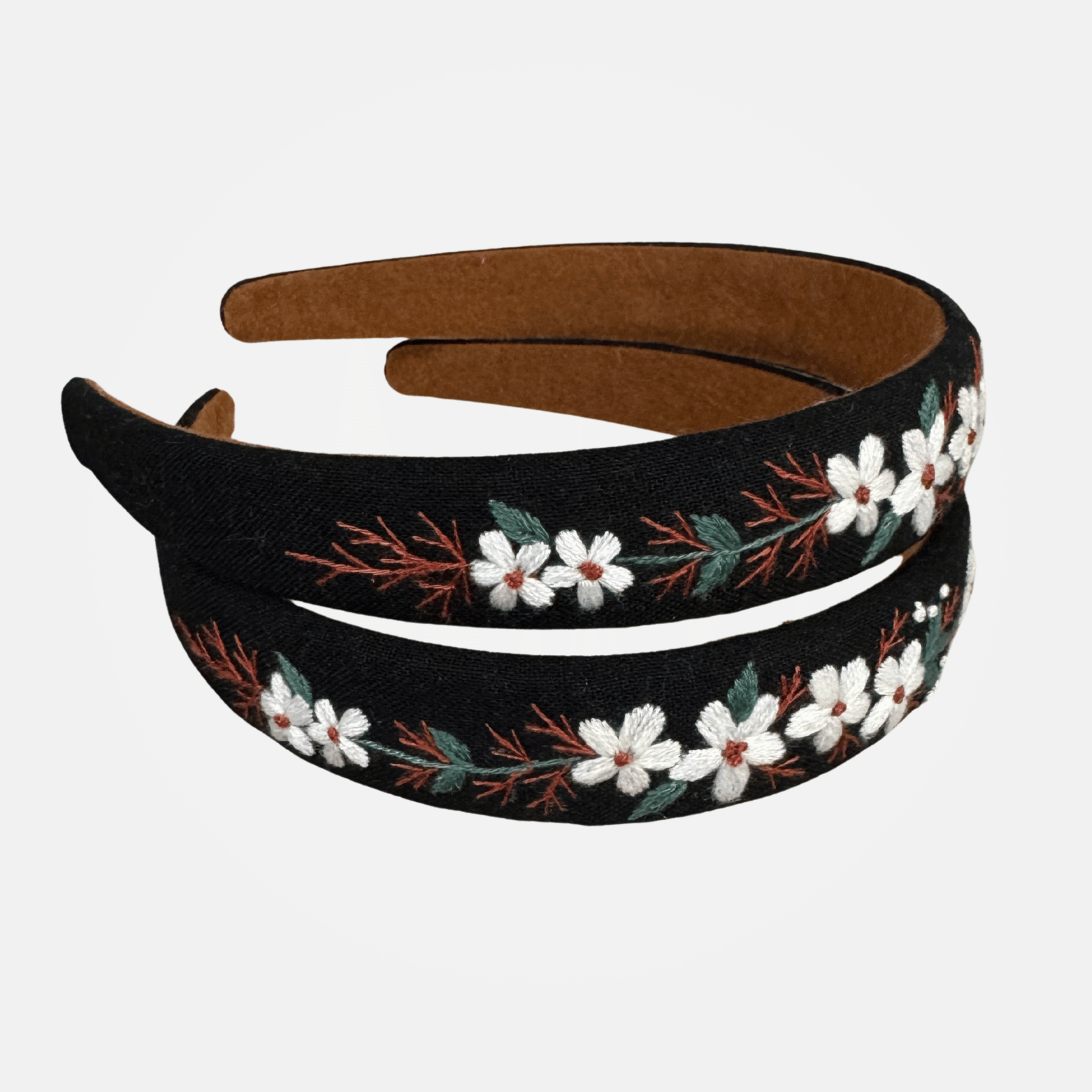 This linen headband is hand-stitched and features a beautiful floral embroidery pattern. Comfort fit!
