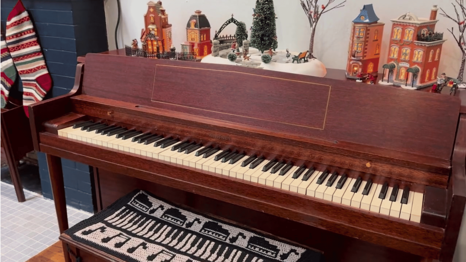 The piano came with the building and had been neglected for decades. After a good cleaning, tuning, and some much-needed repairs (the front legs were falling off), it now makes a lovely addition to the apartment. The piano bench, however, was in bad condition, so I decided to make a cover for it. Only problem - I couldn’t find a pattern. There are zero bench covers of any kind on Ravelry. I found a mosaic crochet blanket pattern called ‘Piano Love’ from Frankys Crochet. I used three panels of the motifs and Rowan’s Softyak DK to turn it into a cover for my bench.