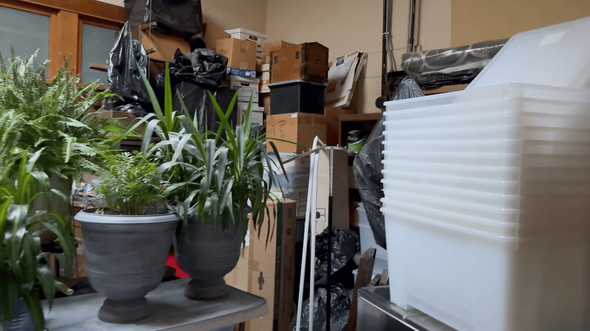At the rear of our space lies a rather messy storeroom. My husband has transformed the area beneath the skylight into his winter greenhouse. While I can't share images of this area, there's also a smaller apartment in the back that is currently occupied, featuring its own entrance at the back of our building