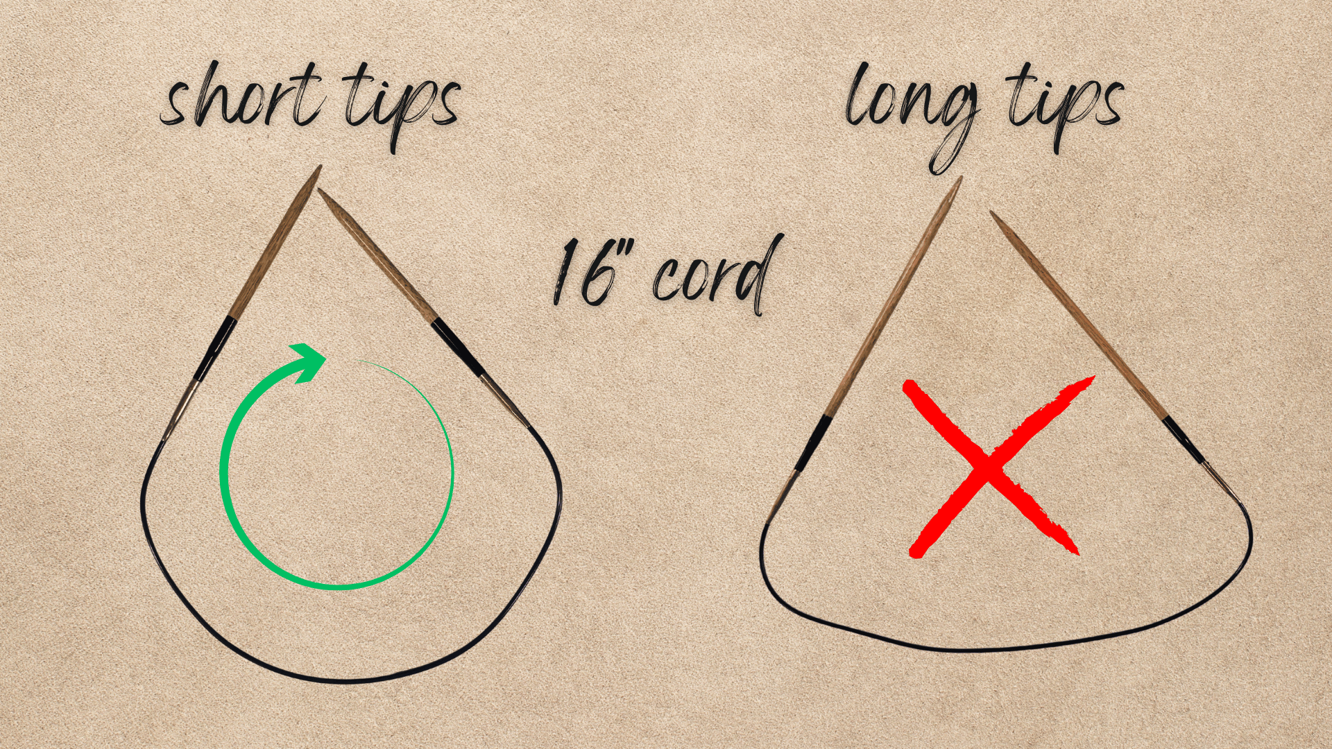 For smaller circumferences, you’ll need short tips. While short tips can technically be paired with any cable length, comfort is really the deciding factor. Some knitters prefer long tips for bigger projects because they simply feel better in the hands and give you a little more to hold onto. Others use short tips for absolutely everything and never think twice about it.