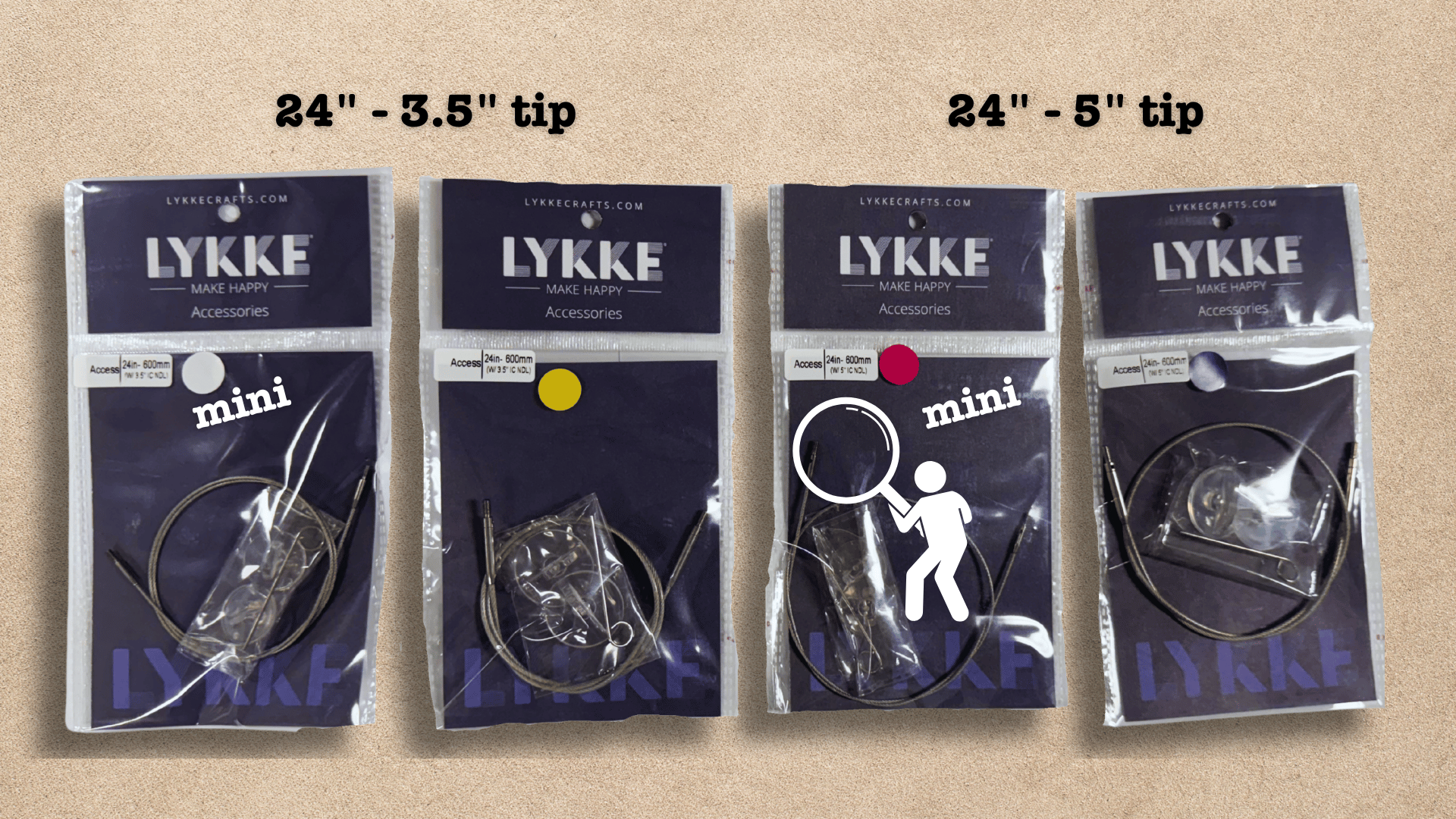 When Lykke entered the market, they tried to solve the length discrepancy issue. They introduced 16", 20", and 24" cables designed specifically for their 3.5" short tips, and separate 20"–60" cables for their 5" long tips.