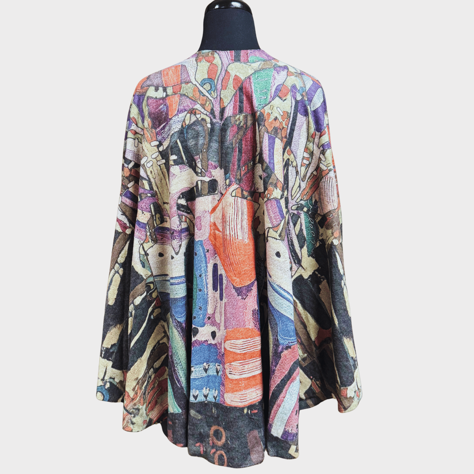 Cuddly soft circular-shaped shawl with stylish pull-through loop closure.