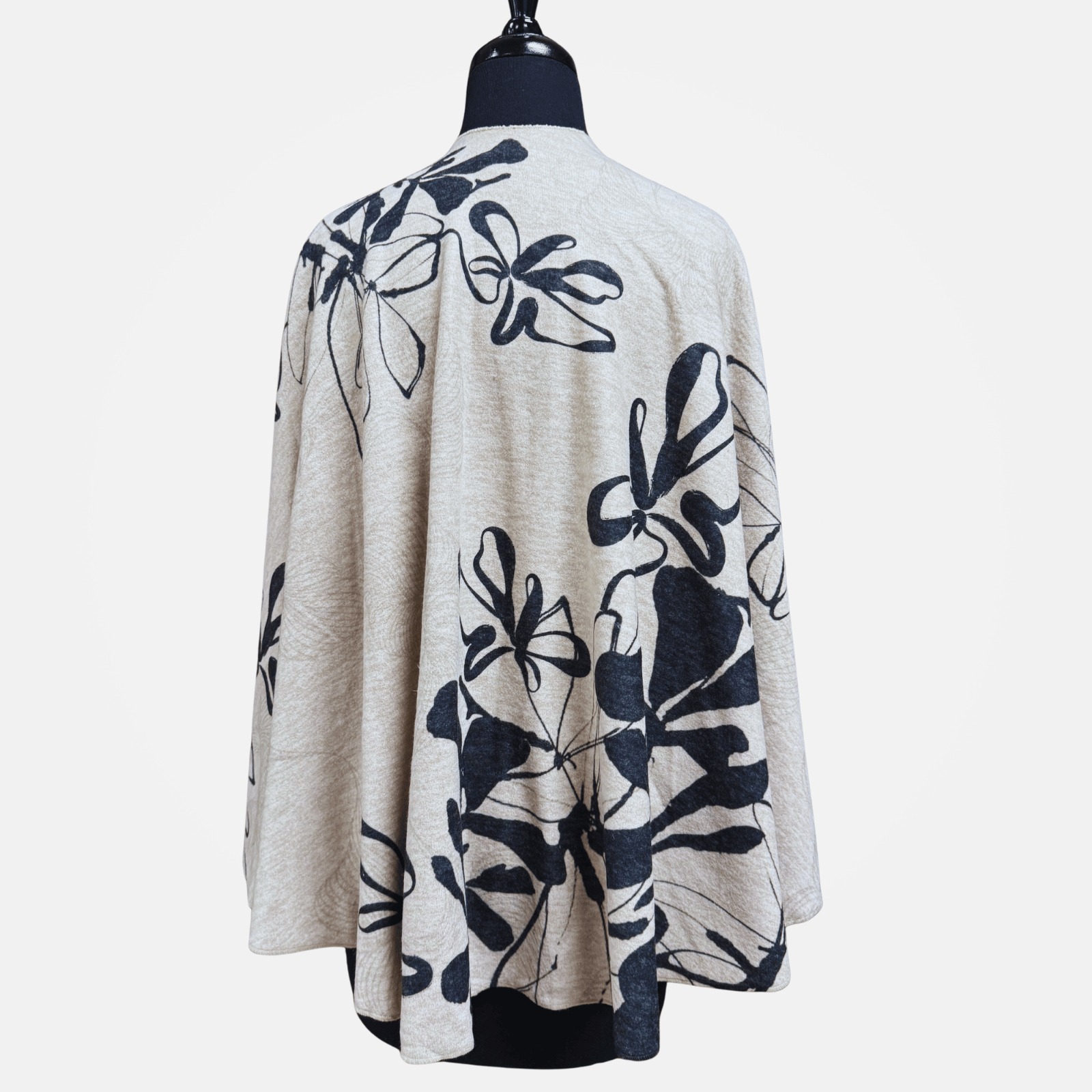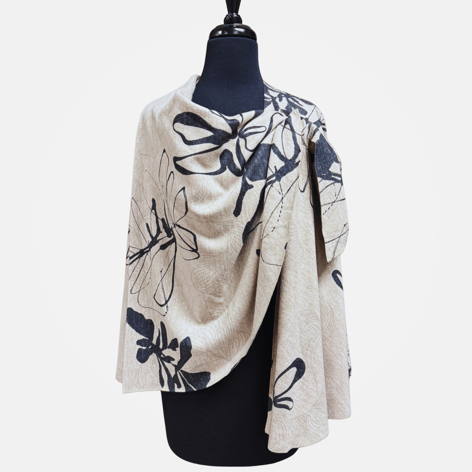 Cuddly soft circular-shaped shawl with stylish pull-through loop closure.