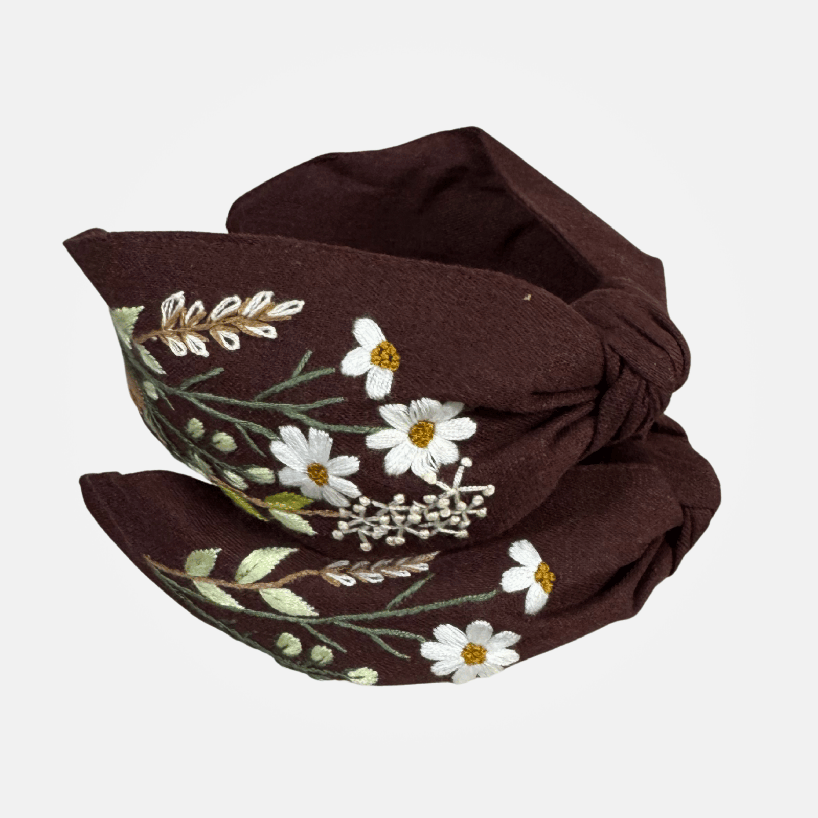 Review Floral Embroidered Top-Knot Headband (Brown)