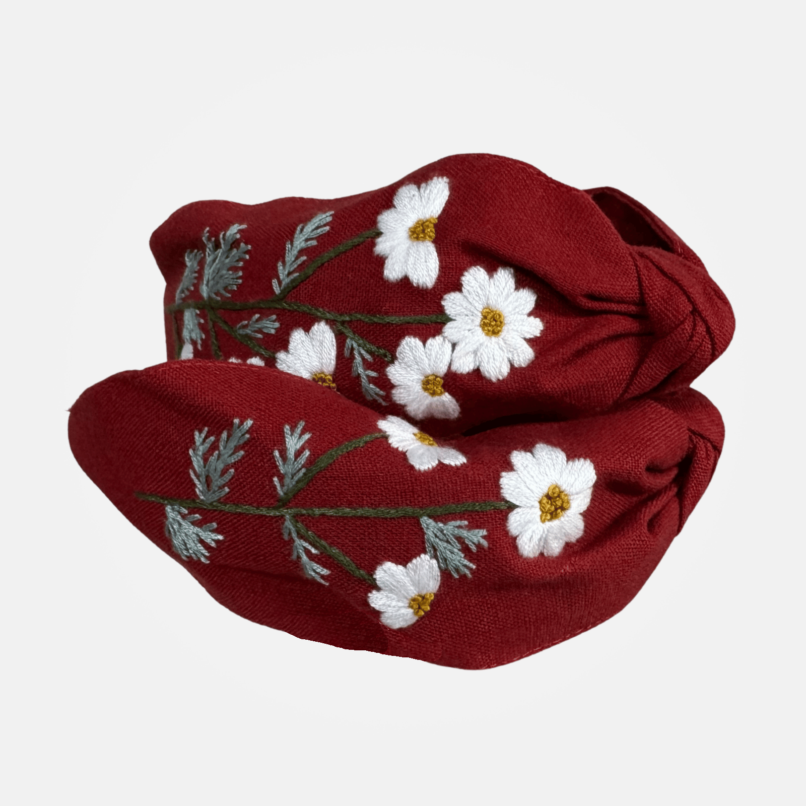 This linen headband is hand-stitched and features a beautiful floral embroidery pattern. Comfort fit!