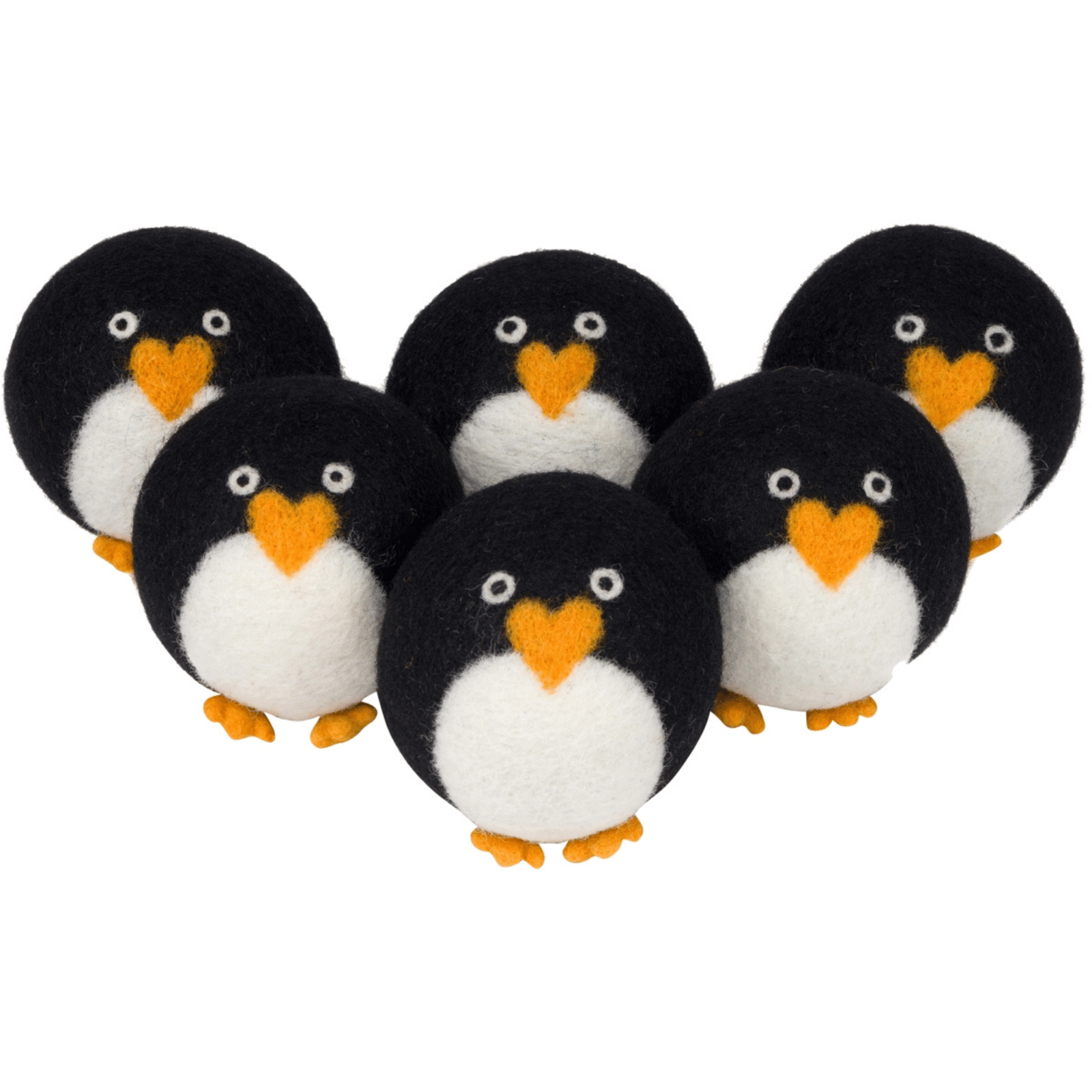Handmade wool dryer ball in an adorable "marching penguin" design. Felted in Nepal by women and minorities paid a strong living wage.