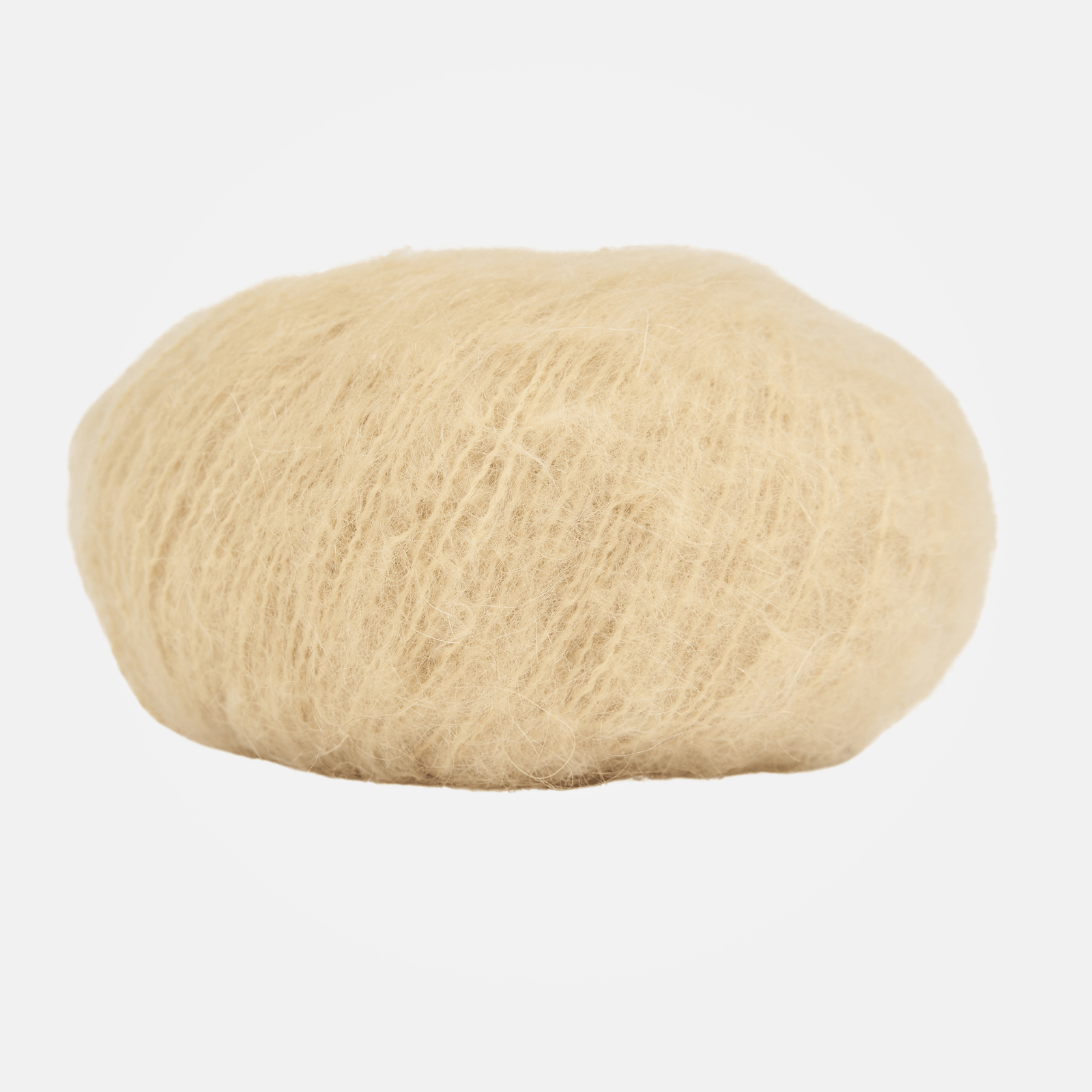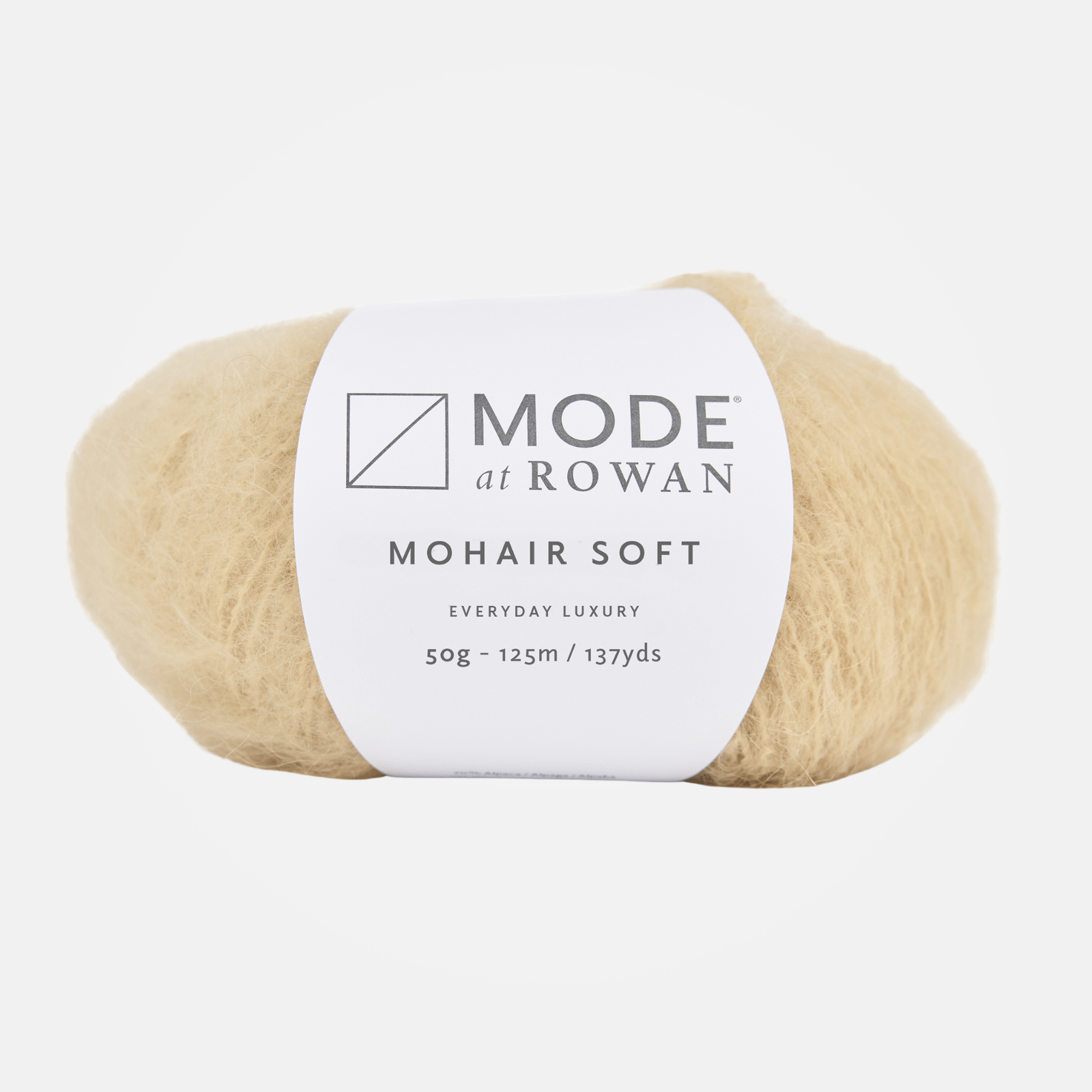 Brand: MODE at Rowan Yarn Weight: Worsted, Aran Fiber Content: 60% mohair, 40% wool Gauge: 4 stitches per 1" Needle Size: US 9 (5.5 mm) Hook Size: US I/9 (5.5 mm) Ball Weight: 50 grams Yarn Length: 137 yards (125 meters) Care: Hand wash, lay flat to dry
