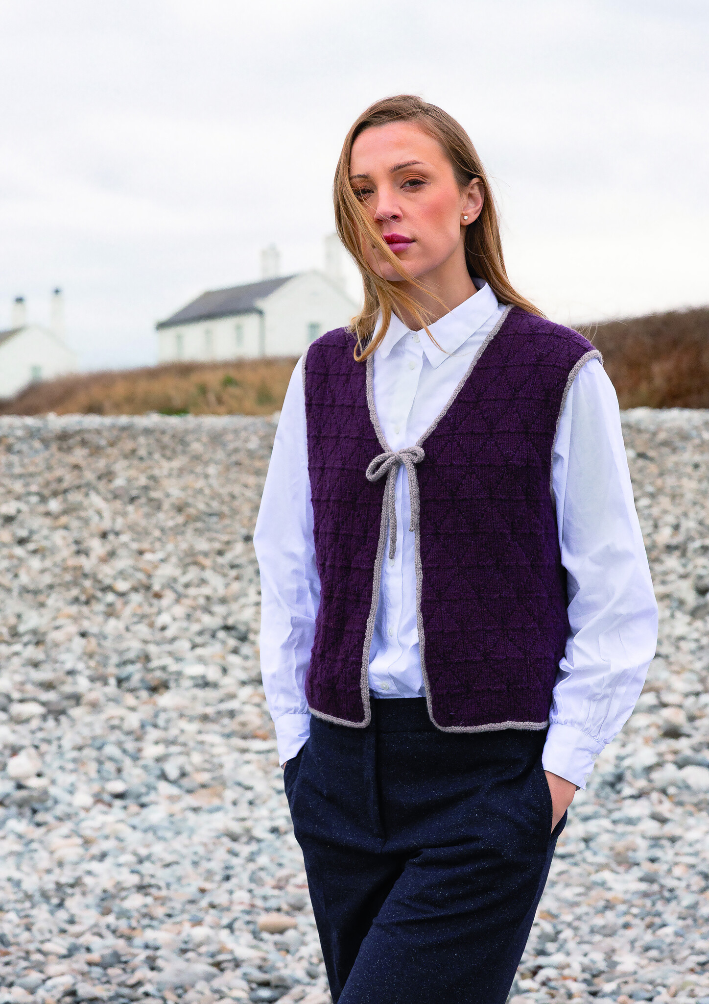 Rowan’s eclectic designers collaborated to create a series of complete outfits that emphasize layers of knitting in carefully chosen traditional color palettes. This feature showcases a range of garments made from Felted Tweed, Kidsilk Haze, Alpaca Soft, Fine Tweed Haze, and Alpaca Classic, utilizing texture and stitch techniques.