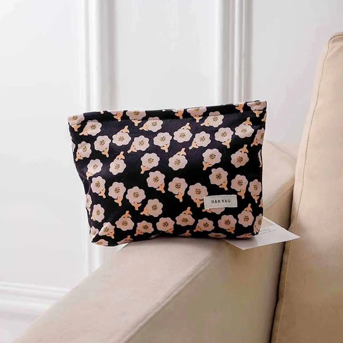 Review Vintage Floral Corduroy Accessory Bag (Black)